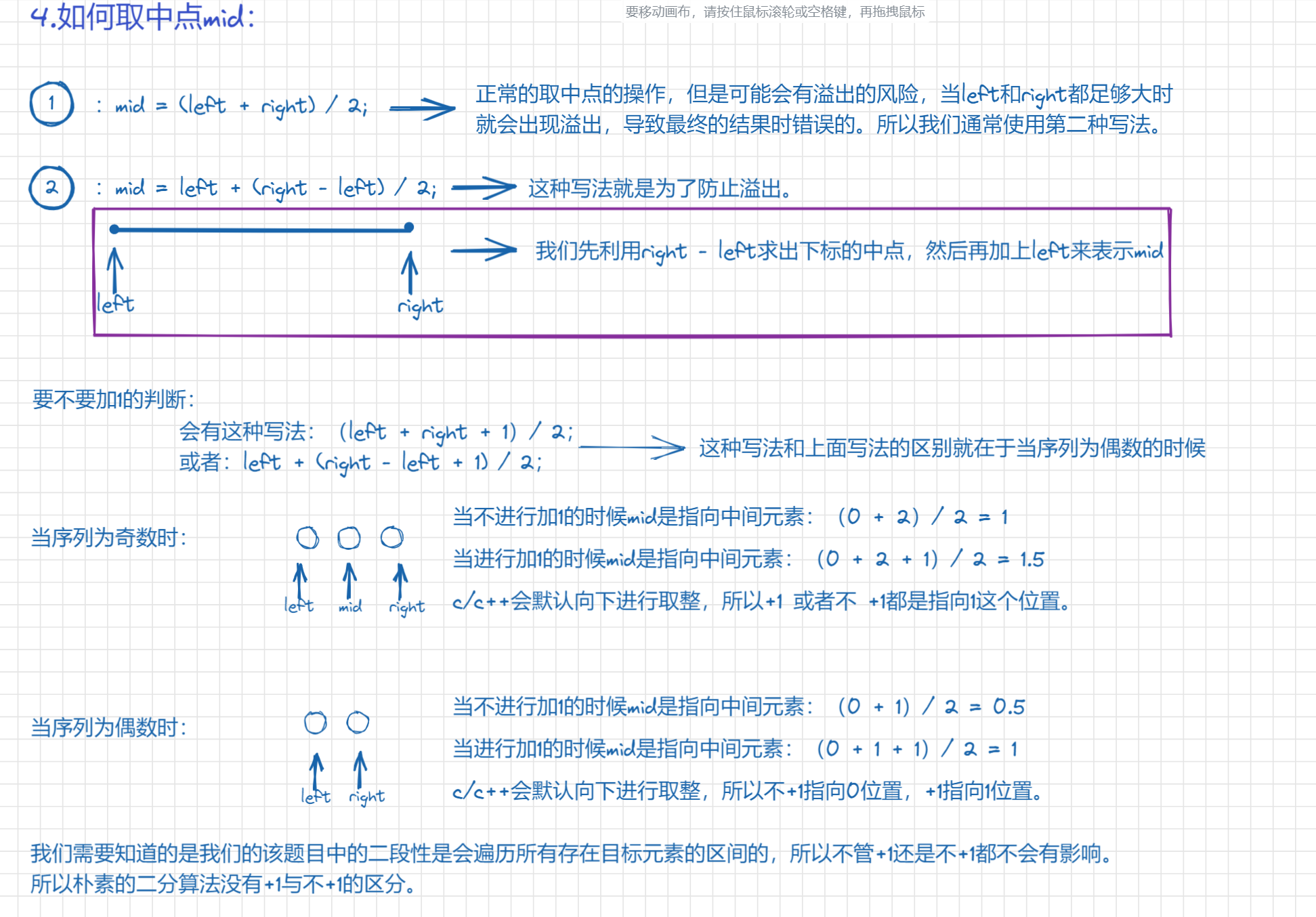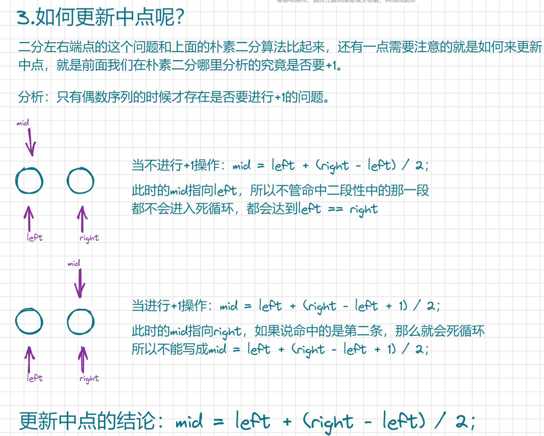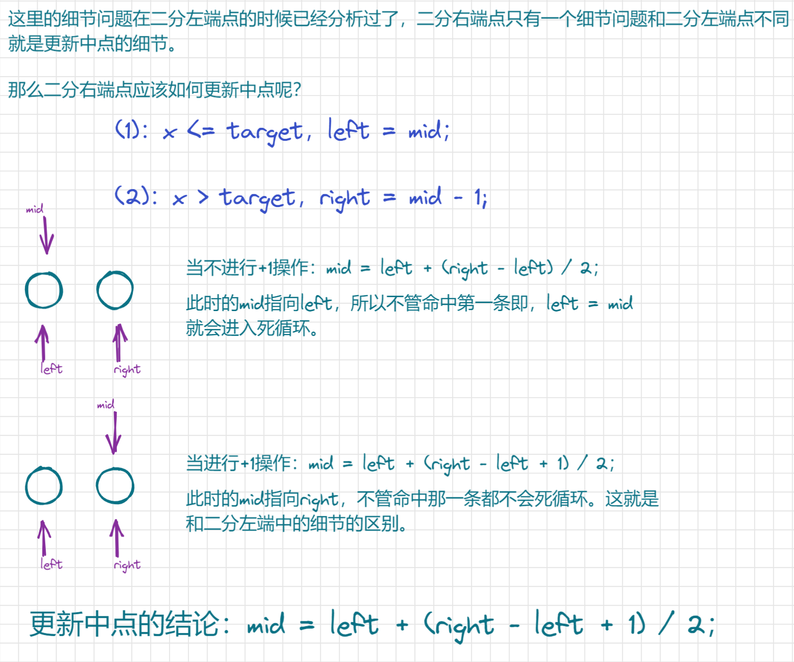 int mid = left + (right - left + 1) / 2;
