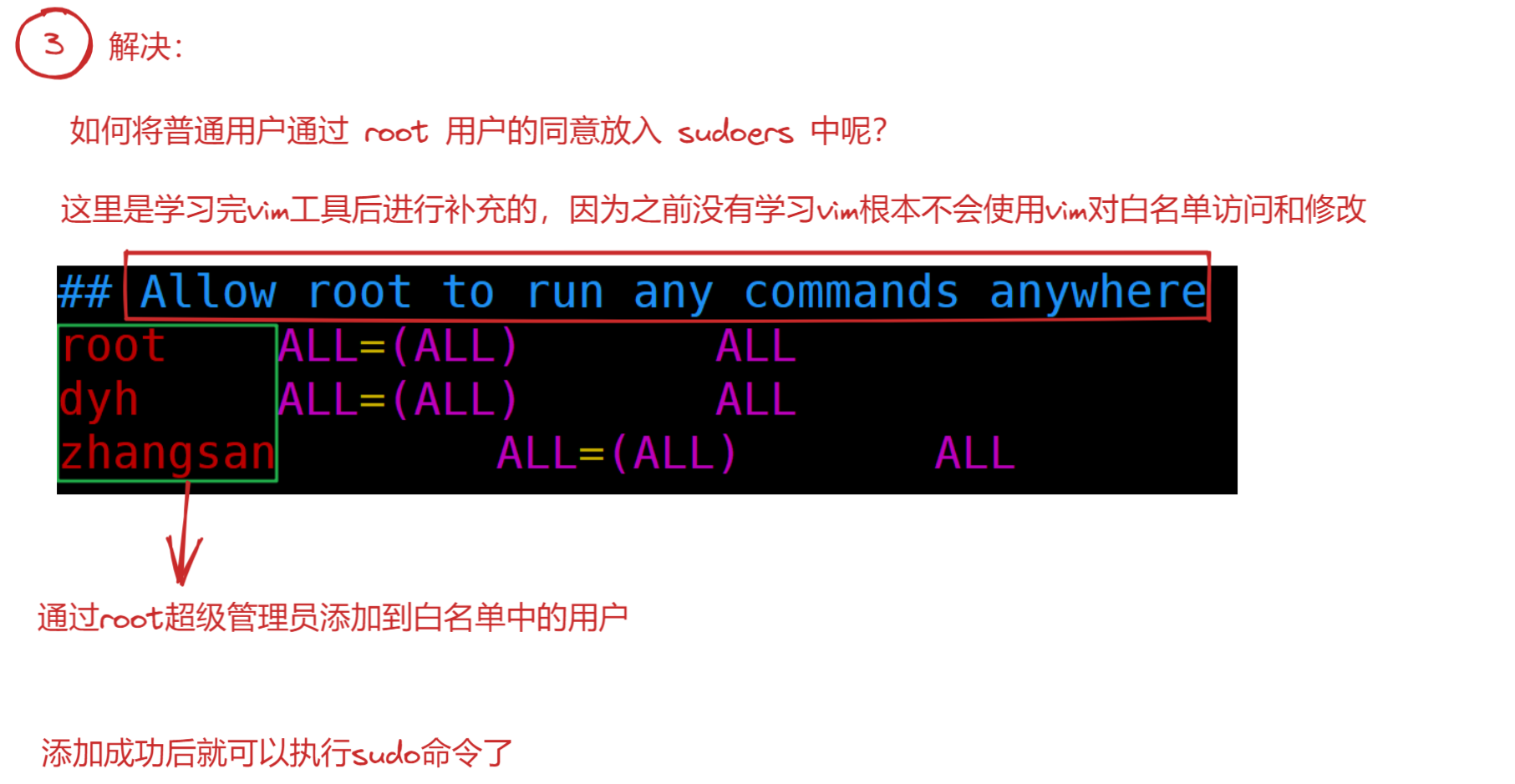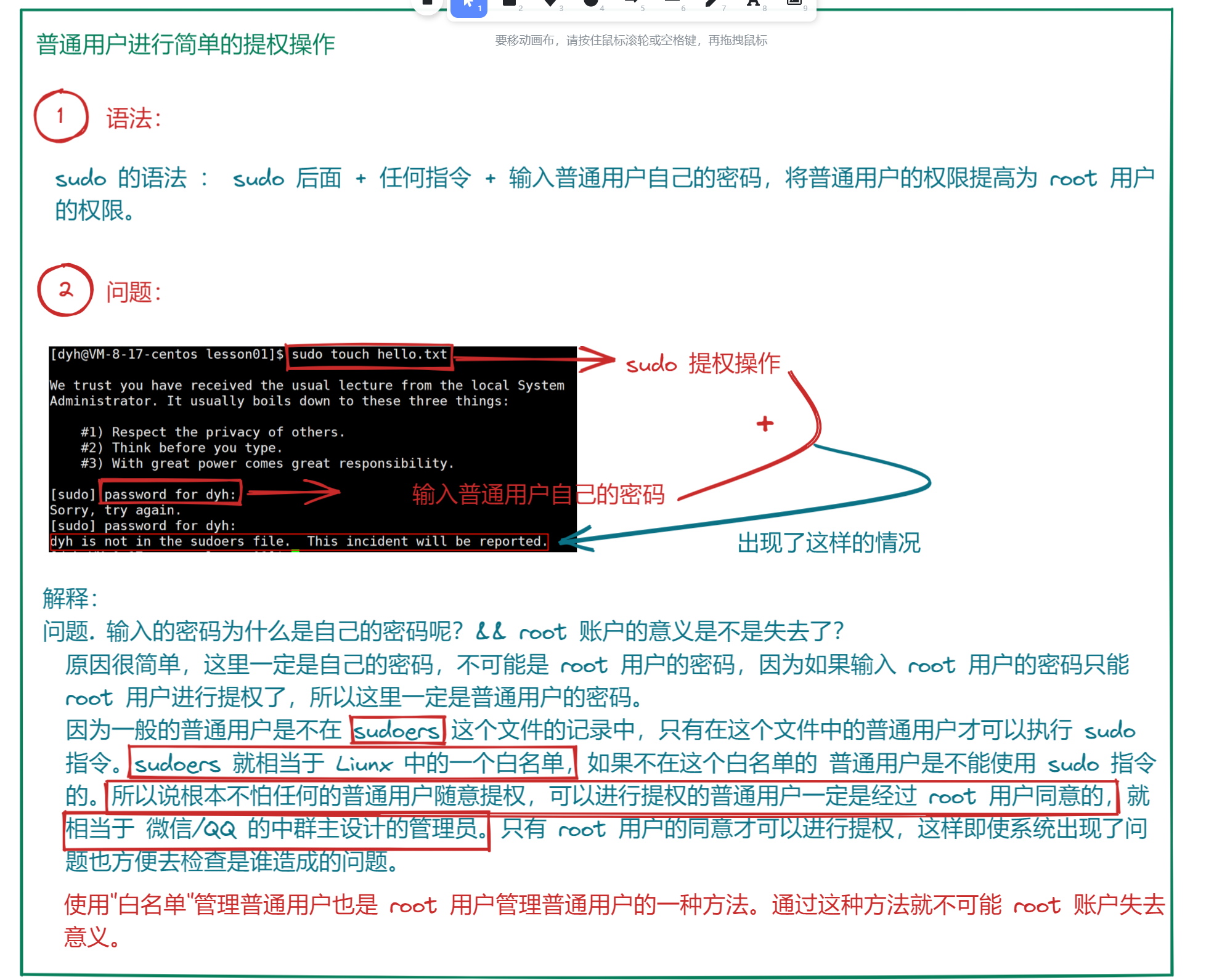 - 首先看一下 sudo 指令的语法和使用时存在的问题: