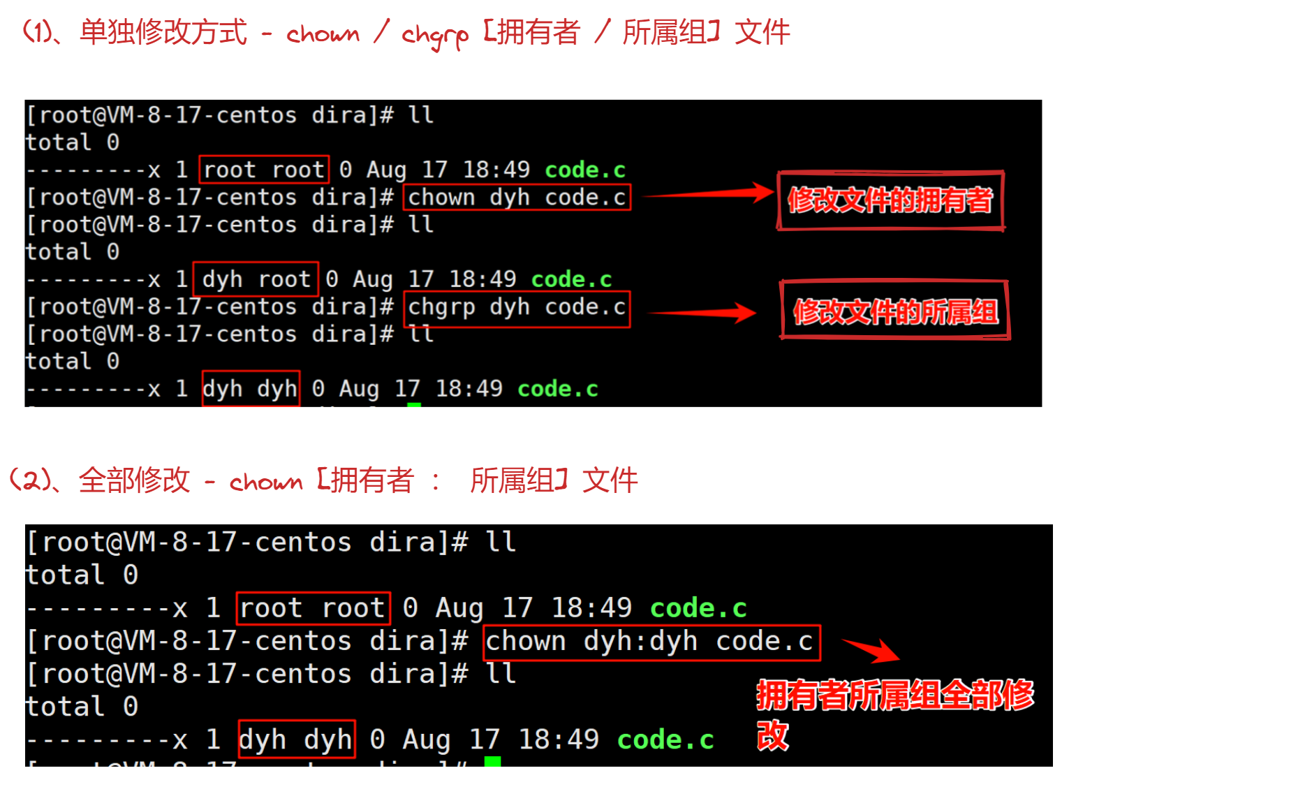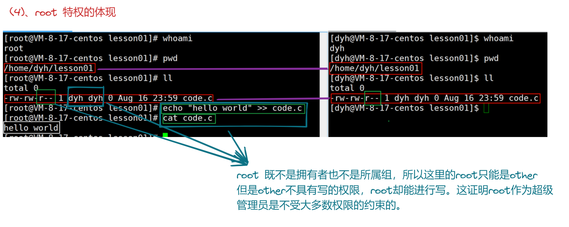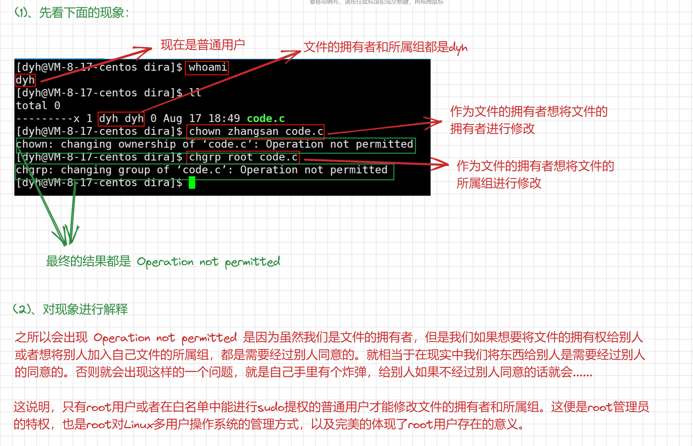 输出一个必须知道的问题:只有拥有者和超级用户root才能修改文件权限