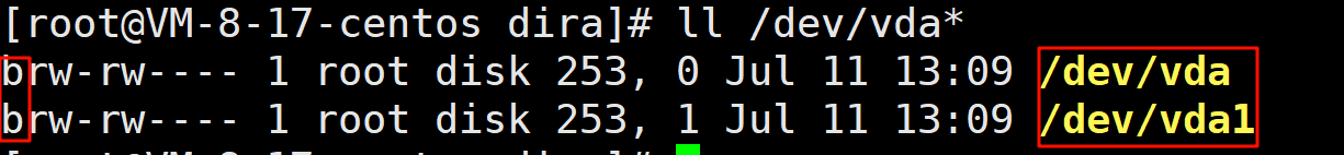 - 'b':块设备文件。—— Linux下的磁盘,类似于windows下的 C/D盘 我们称为块设备