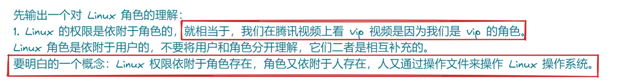 - 在计算机中是一样的,对于Linux而言,当我们是超级管理员root时,我们可以行使自己的特权,并且可以管理普通用户,当我们是普通用户的时候就没有root用户的权力大。所以在计算机操作系统中,不同的用户也是扮演者不同的角色,被赋予不同的权力。