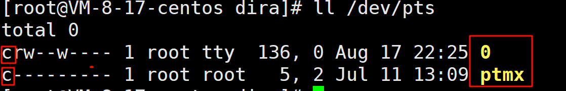 - 'c':字符文件(设备)。—— 终端文件,在Linux下一般事键盘显示器