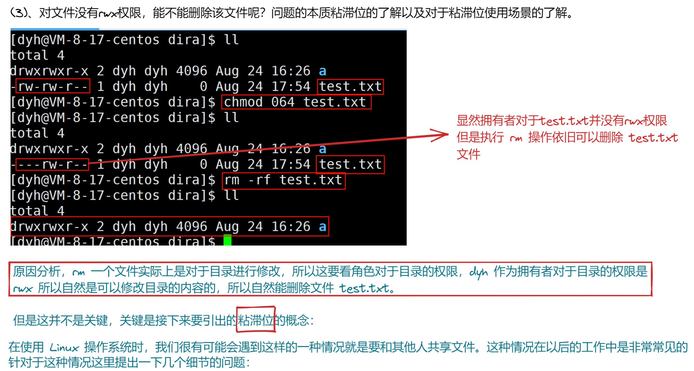 4.3、如果没有rwx权限能否删除文件(粘滞位)