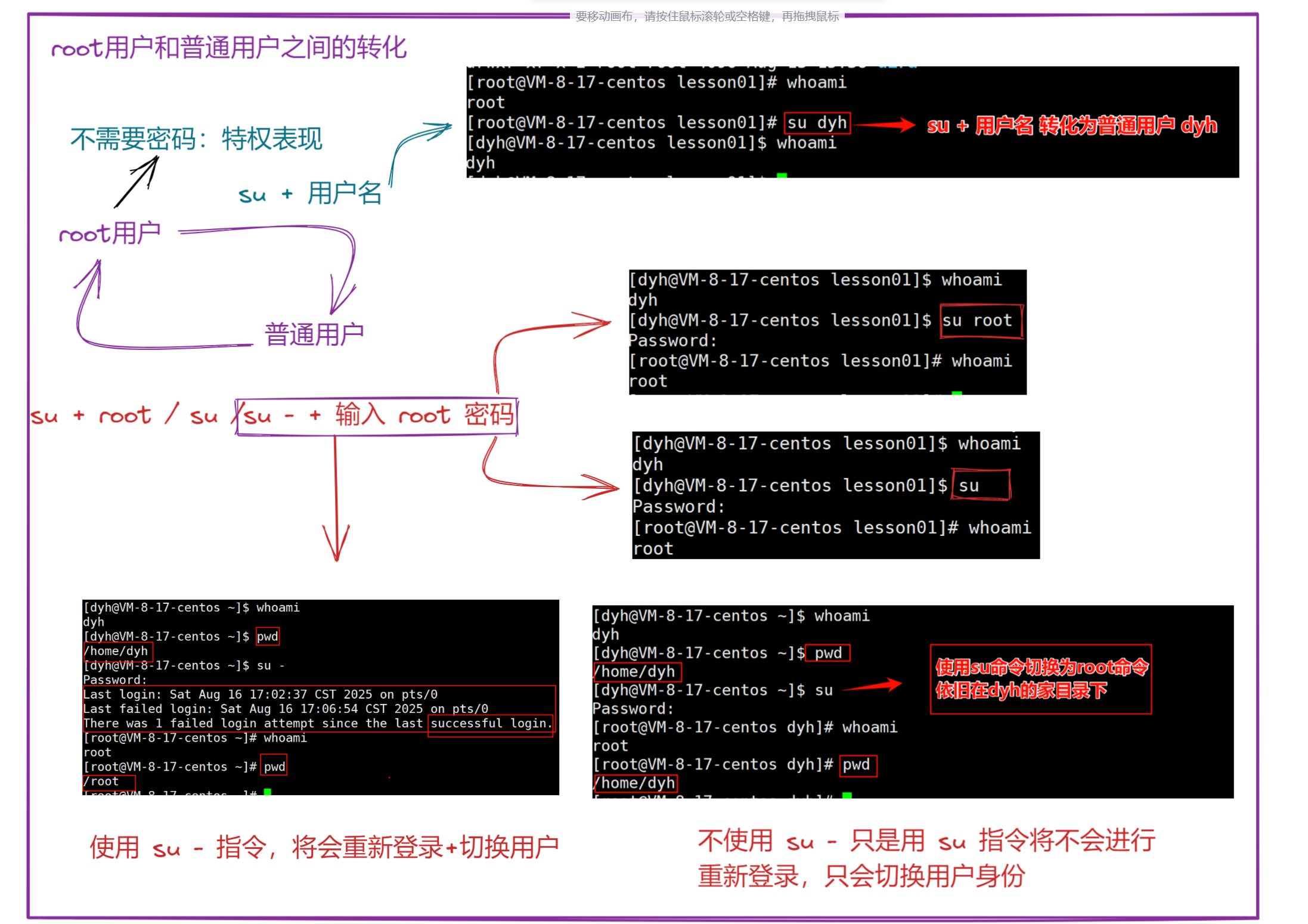 - root用户和普通用户之间的转化 —— 以root用户和dyh用户为例