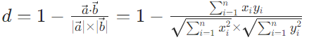 公式:对于两个向量 a(x1,x2,...,xn) 和 b(y1,y2,...,yn),余弦距离为:
