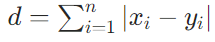 公式:对于两点 A(x1,x2,...,xn) 和 B(y1,y2,...,yn),曼哈顿距离为: