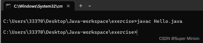使用命令 "javac + 文件名.java" 编译java文件,得到.class字节码文件
