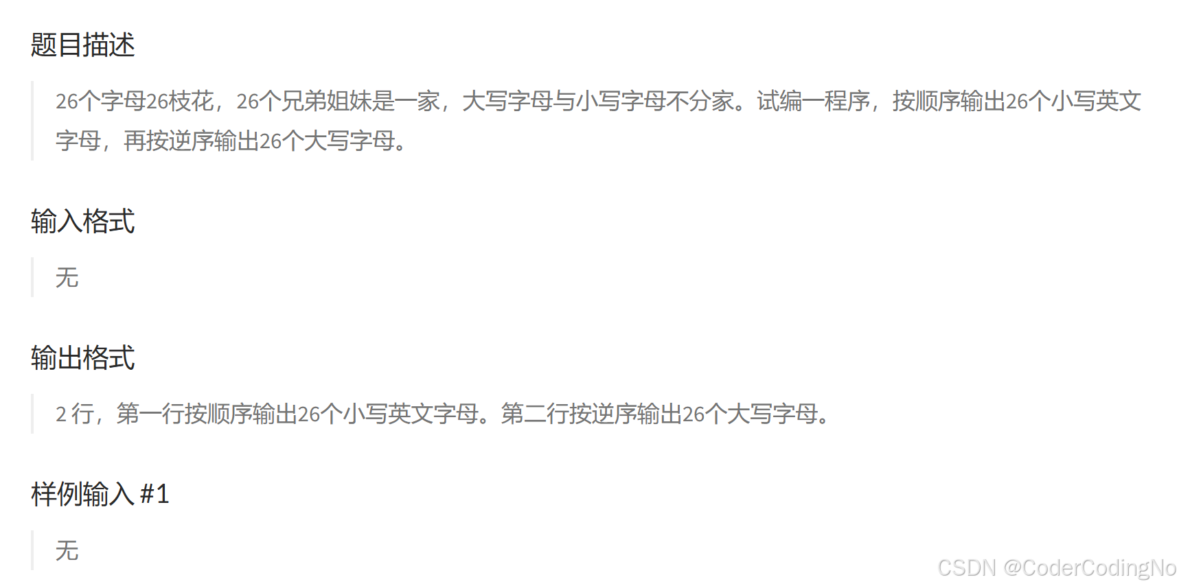 26个字母26枝花,26个兄弟姐妹是一家,大写字母与小写字母不分家。试编一程序,按顺序输出26个小写英文字母,再按逆序输出26个大写字母。