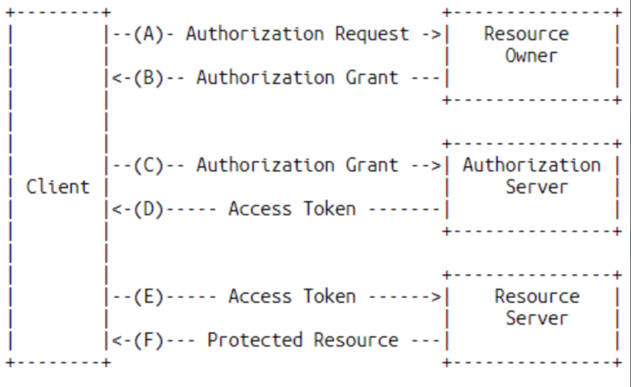 (B) 客户端(Client)得到资源所有者(Resoure Owner)的授权,这通常是一个凭据;授权的形式和凭据可以有不同的类型。RFC 6749 定义了四种主要的授权类型(下文进一步介绍)