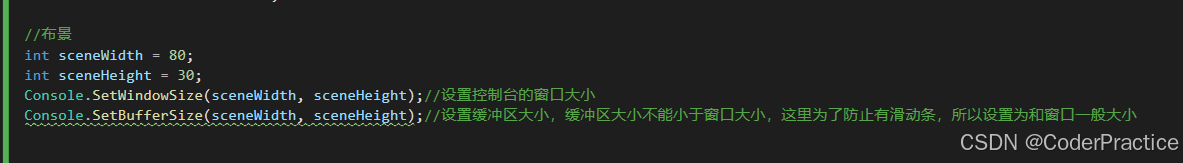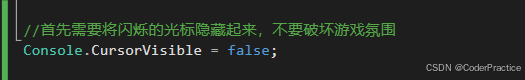 我们用了两个死循环来实现程序一直在运行的状态,然后通过Console.ReadKey(true).KeyChar;这个方法来实现阻断接口,括号里的true表示玩家输入的按键不会在控制台上显示。如果改为 false 或省略,按下的键会回显到控制台窗口。