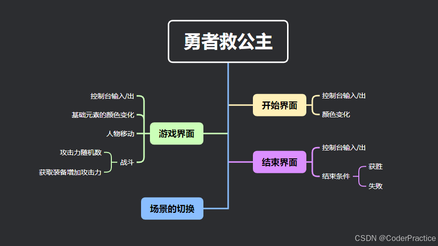 然后还有问题要注意,为什么sceneWidth / 2 - 5后面这个是-5,因为中文是全角字符,一个字占两个空格,当光标居中时,打出来的标题是靠右的,我们标题“勇者救公主”是五个汉字10个半角字符,-5就刚好减到‘救’的中间,就是居中了