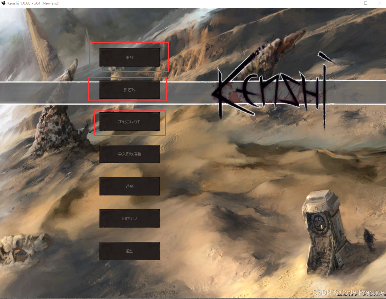 这里要搞清楚很重要的一点,运行中的游戏,在不崩溃或者不点击”退出游戏“的情况下,实际上它就可以理解成一个一直在运行的死循环,只不过这里面有很多阻塞性接口在等待指令,我随便拉一个游戏开始界面出来,比如kenshi