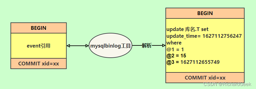 update_time=now()变成了具体的时间update_time=1627112756247,条件后面的@1、@2、@3 都是该行数据第 1 个~3 个字段的原始值(假设这张表只有 3 个字段)。这样就能保证同步数据的一致性,通常情况下都是指定为row,这样可以为数据库的恢复与同步带来更好的可靠性。