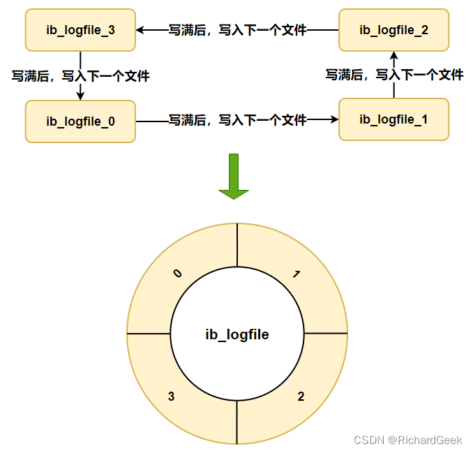 它采用的是环形数组形式,从头开始写,写到末尾又回到头循环写,如下图所示: