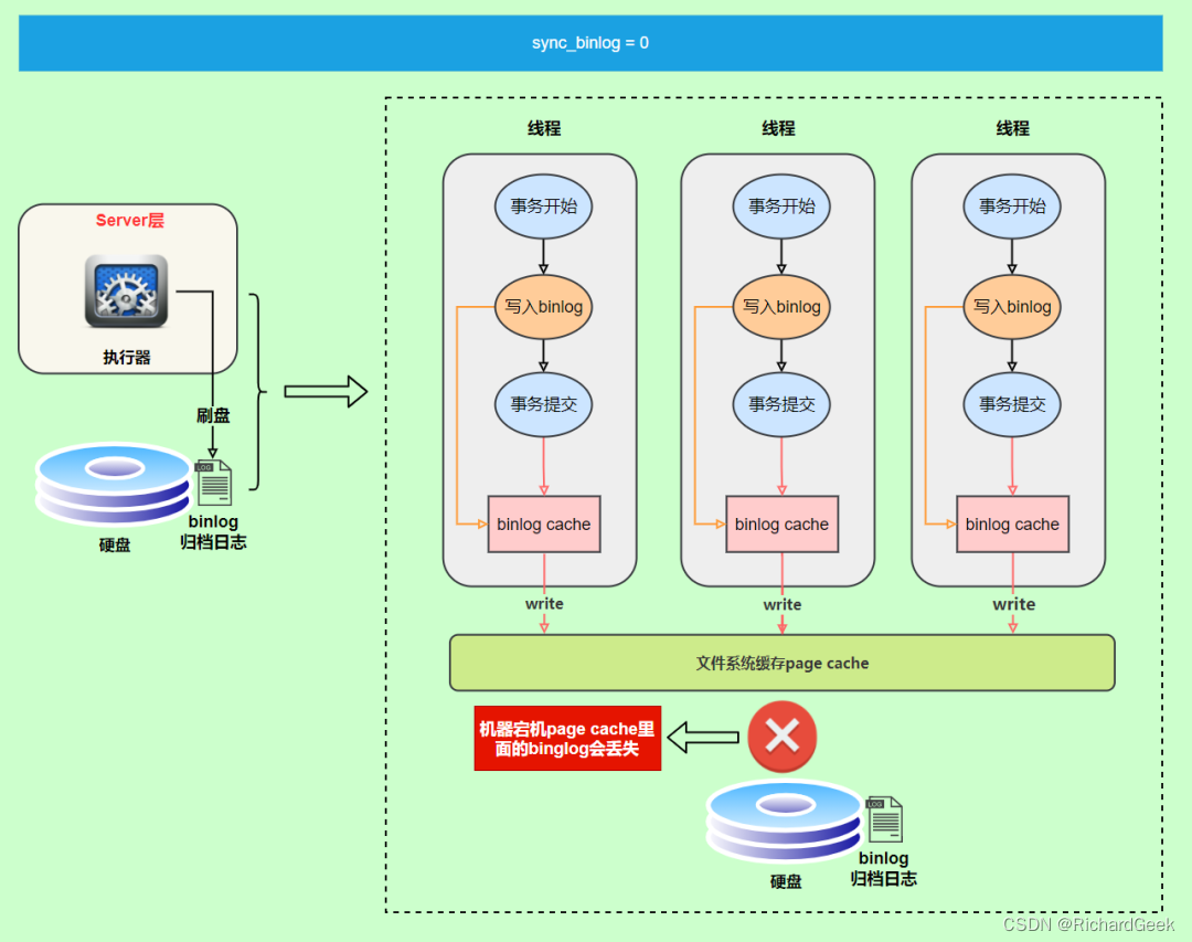 虽然性能得到提升,但是机器宕机,page cache里面的 binglog 会丢失。
