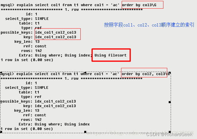 说明mysql会对数据使用一个外部的索引排序,而不是按照表内的索引顺序进行读取。MySQL中无法利用索引完成的排序操作称为“文件排序”。