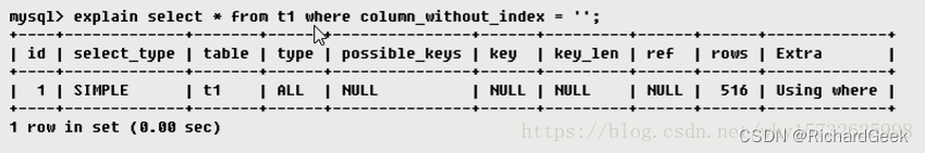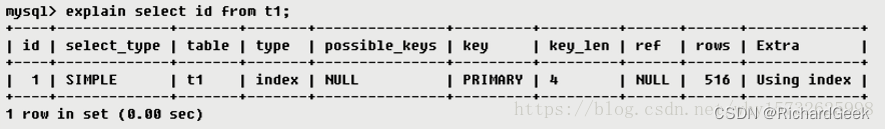 id是主键,所以存在主键索引 allFull Table Scan 将遍历全表以找到匹配的行