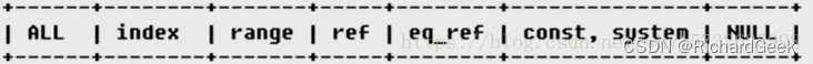type所显示的是查询使用了哪种类型,type包含的类型包括如下图所示的几种: