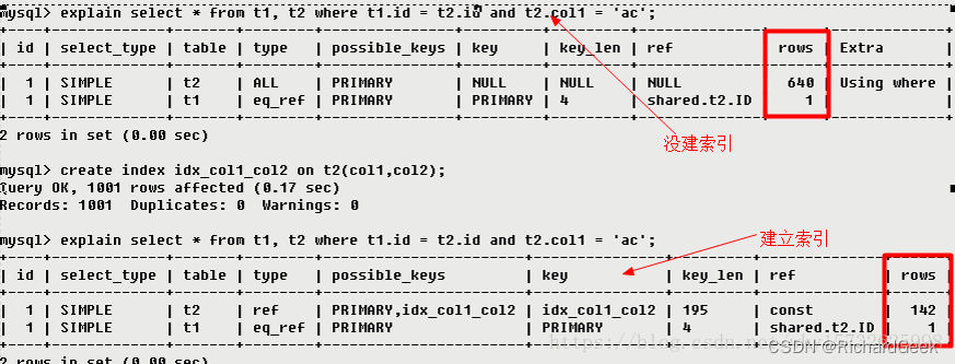 ➤ 通过EXPLAIN,我们可以分析出以下结果: