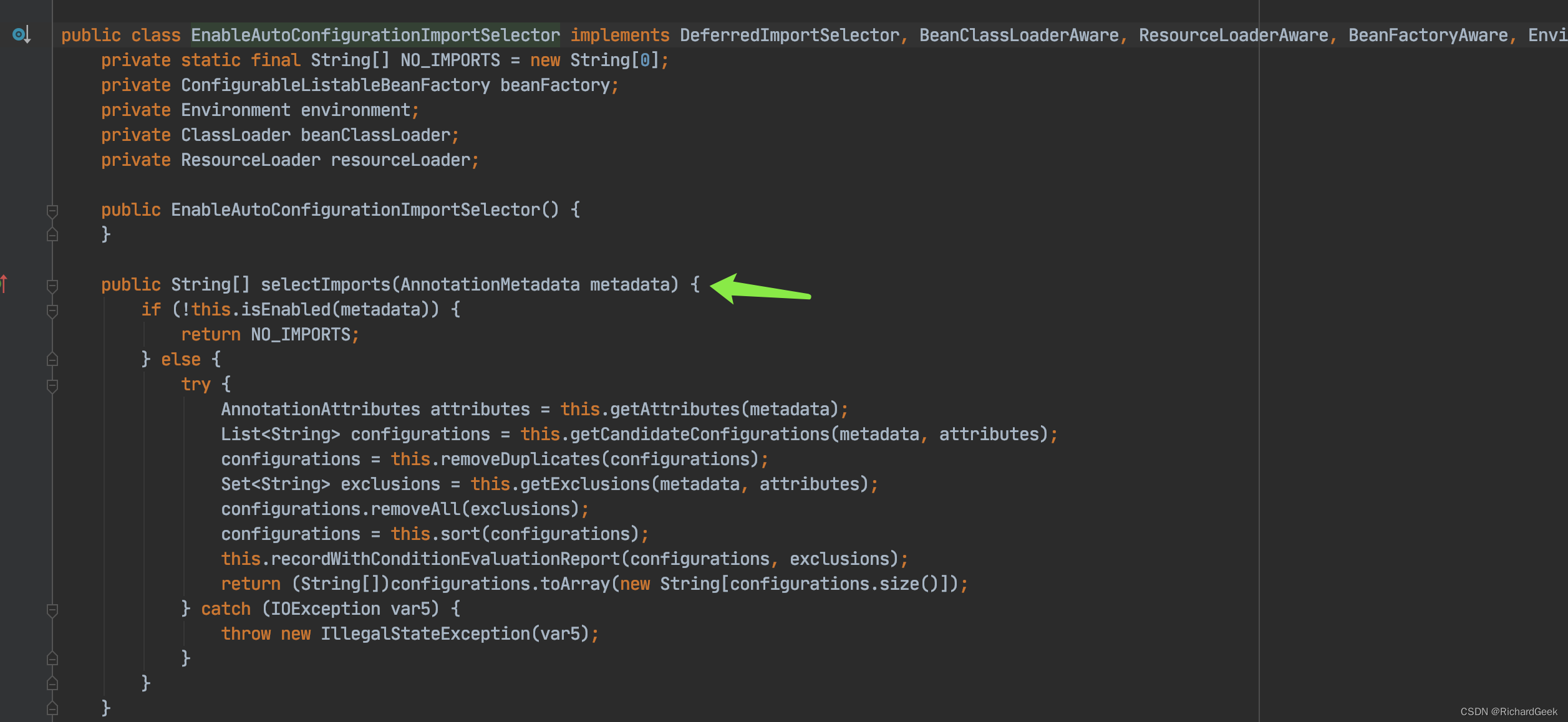 EnableAutoConfigurationImportSelector实现了ImportSelector的子接口 DeferredlmportSelector。