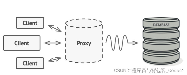此时如果有一个代理,用法上和数据库一致,这个代理先收集来自多个客户端的请求,进行缓存,然后逐渐转发给数据库,避免了通道发生阻塞,那么数据库此时的处理速度会大大提升。