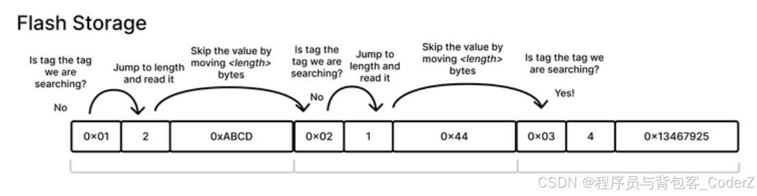 当找到tag为0x03的TLV数据时,根据Length字段为4,我们知道该值有4个字节长,因此我们只需读取接下来的4个字节作为Value。