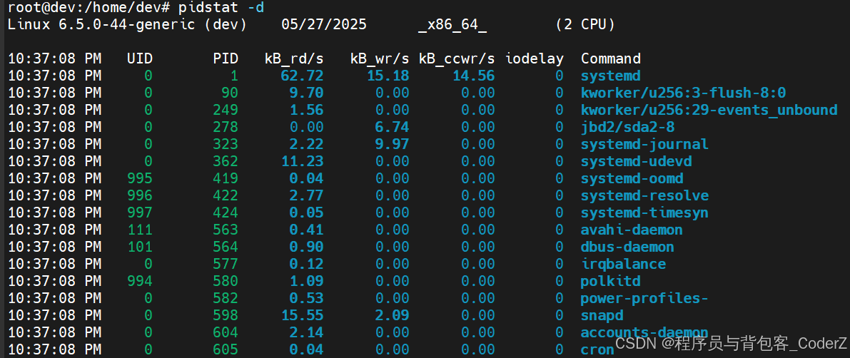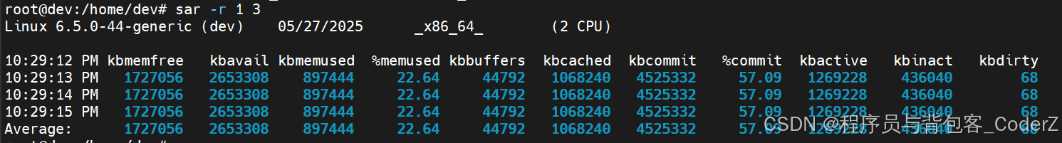 这是一个快速查看Linux系统平均负载的方法,这些数值包含了期望在CPU上运行的进程,以及在连续I/O操作中被阻塞的进程。