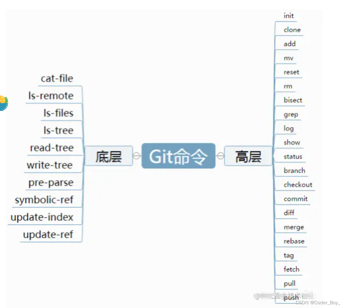Git常用命令共有30多个,可运行git help查看;但Git总共有130多个命令,可以通过git help -a查看,这些命令可以分为高层命令和底层命令,底层命令被设计成unix风格,不常用