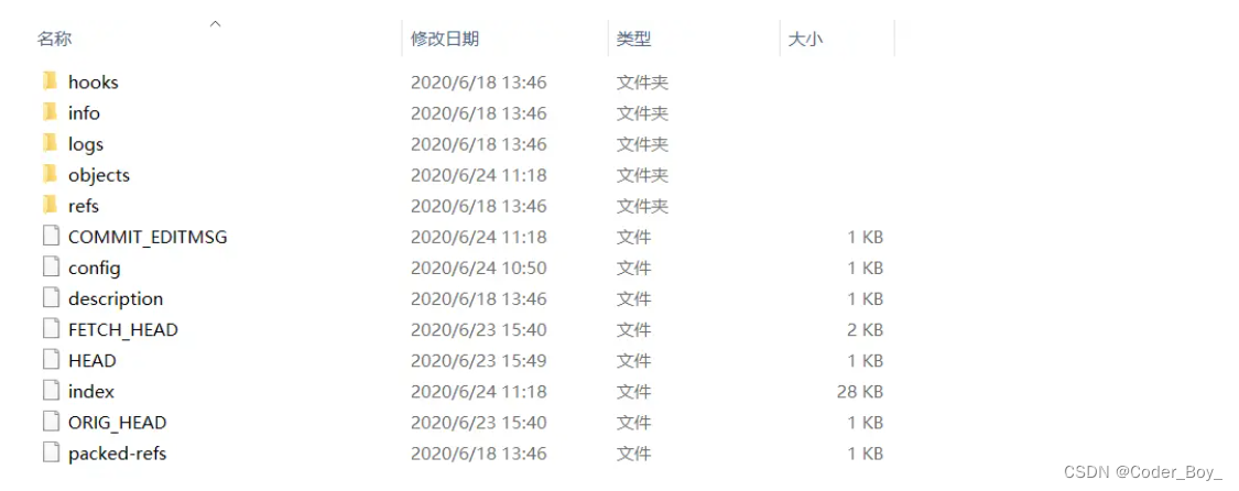 - objects 文件夹存储着Git数据库的所有内容,存储所有Git的对象