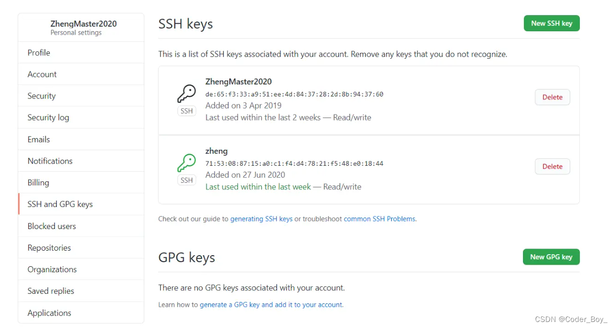 - 登录Github或者Gitlab,添加ssh