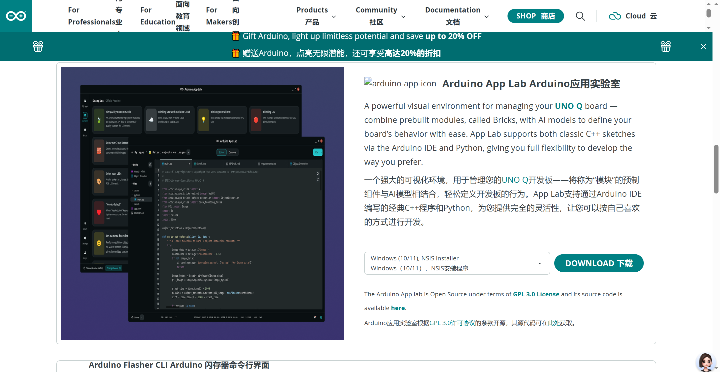 下载软件:打开Arduino官网(https://www.arduino.cc/en/software/),找到「Windows Installer」(Windows系统),点击下载(无需注册,直接下载); 注:macOS用户下载「macOS Disk Image」。