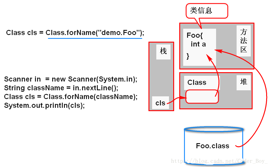 //cls 引用的对象就是连接到方法区中类信息的API对象。