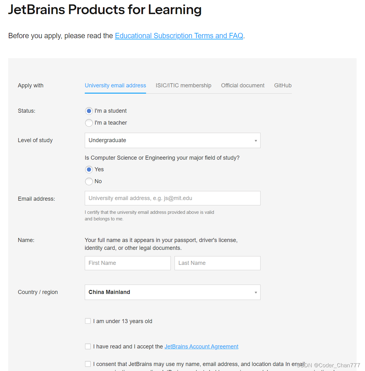 3、填写个人信息(此处邮箱地址必须为校园邮箱即xxxx@edu.xxx等)