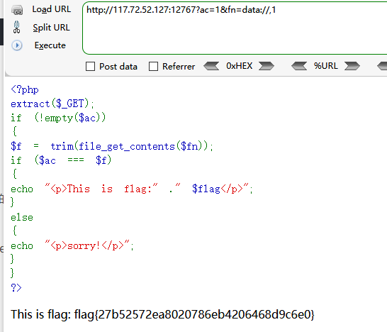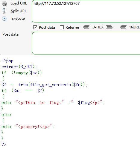 get填写2个变量,变量ac非空,且ac的值等于读取的fn文件内容。所以要么读取服务器上已存在的文件,要么构造一个文件