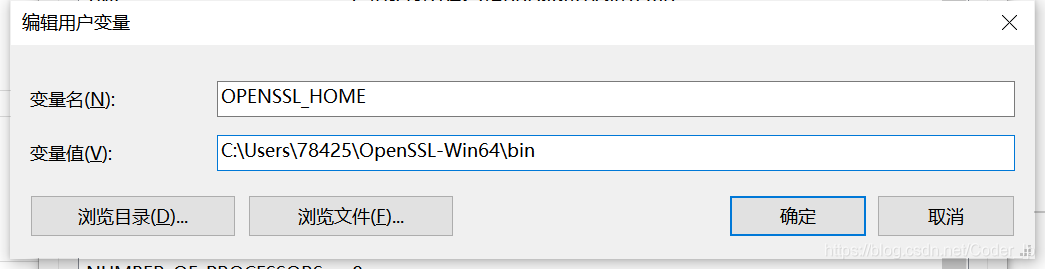 变量值:C:\Users\78425\OpenSSL-Win64\bin 改为你的OPENSSL安装目录
