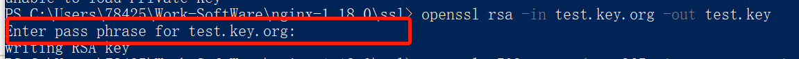 6)去除之前创建私钥设置的密码,不然配置到nginx后启动还要输入密码,太麻烦