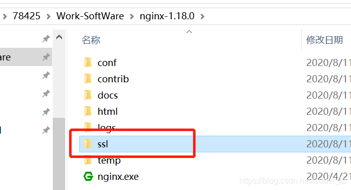 3)在nginx的安装目录创建存储SSL证书的文件夹