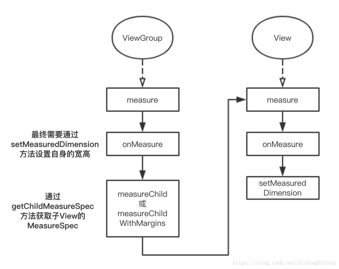 上面分别从View和ViewGroup的角度讲解了测量流程,这里再以流程图的形式归纳一下整个measure过程,便于加深记忆: