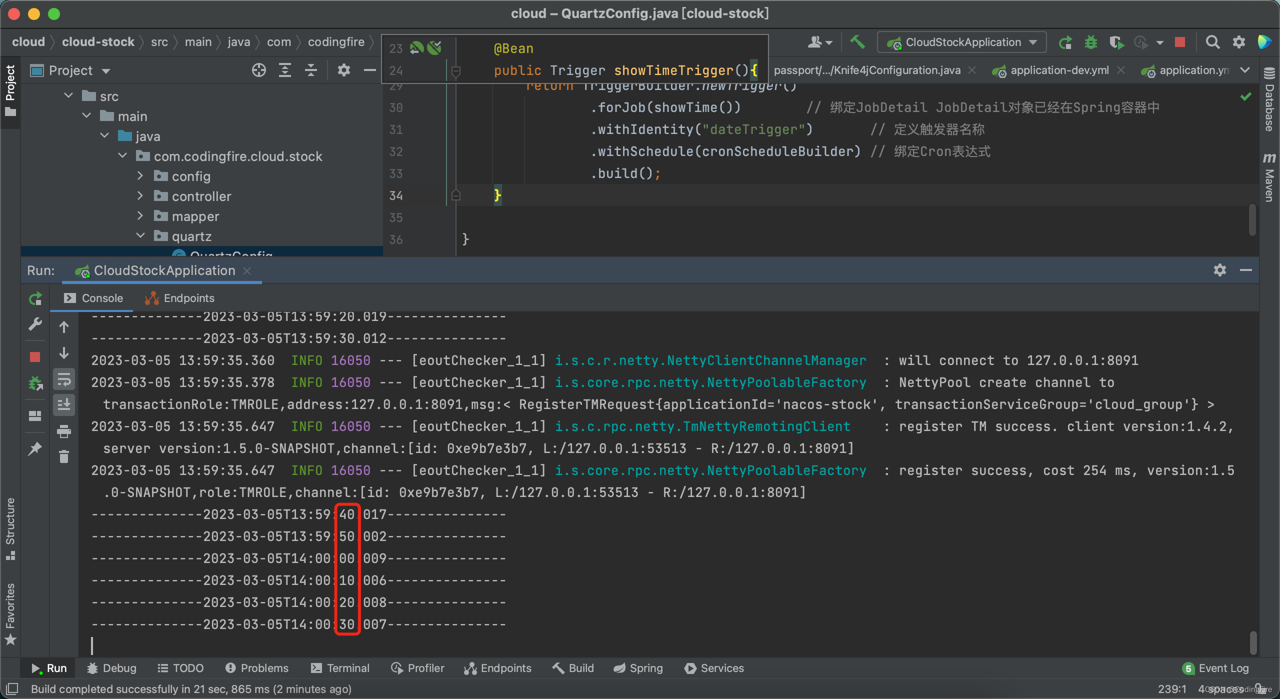 我们选择在cloud-stock子工程下引入Quartz依赖: