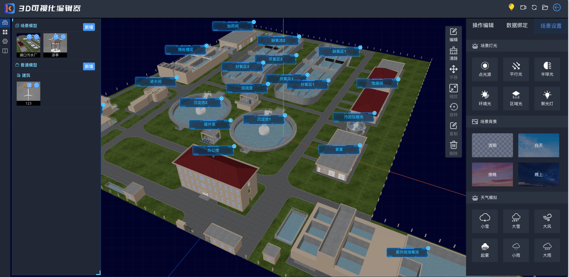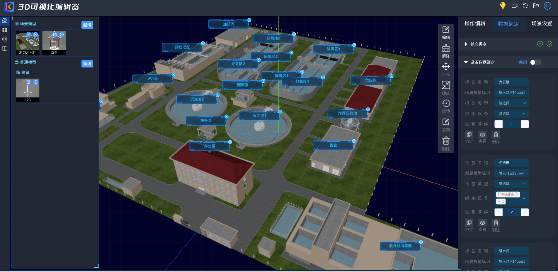 随着5G和物联网的发展,当康科技推出3D可视化编辑器,帮助企业实现3D场景服务。该编辑器支持场景灯光控制、图标与文字绑定、模型位置调整等功能,并提供动态数据注入、模型动画绑定等高级特性,适用于智能水泵房等领域的3D模拟和巡检。此外,用户可自定义上传模型和场景,实现个性化展示,模拟不同时间段的背景效果。