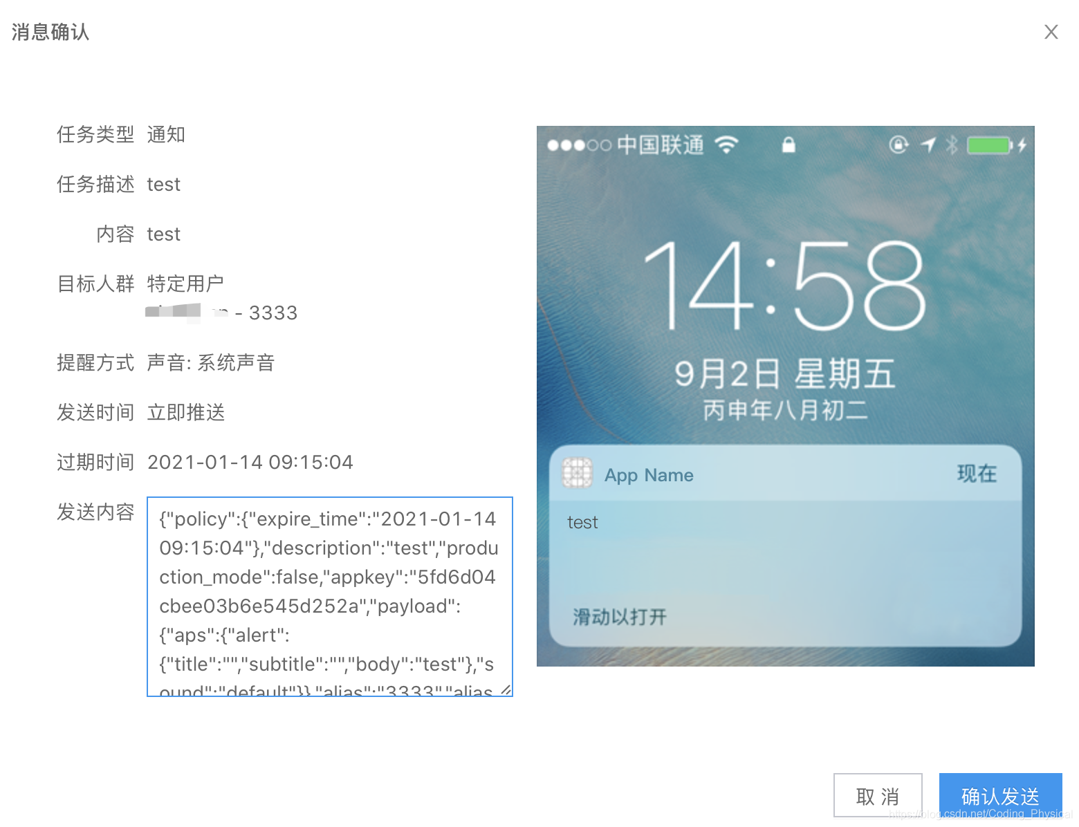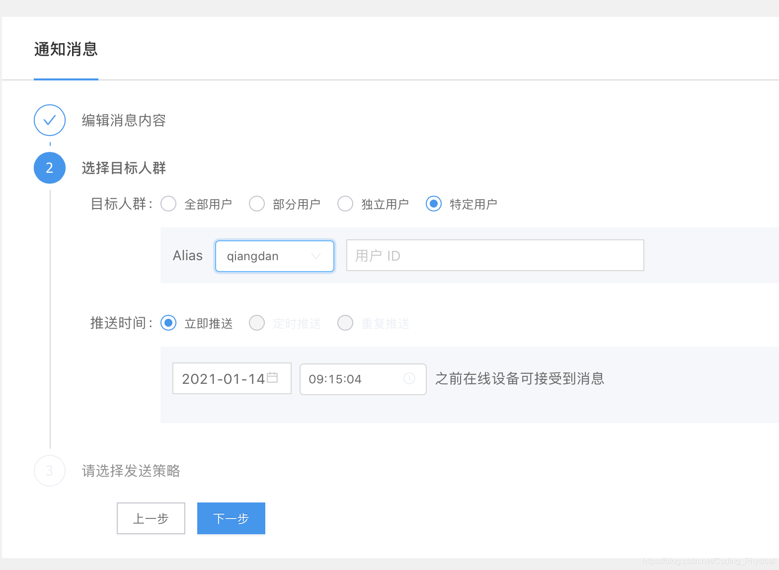 2.选择接收对象 建议使用别名这样只影响一个用户手机