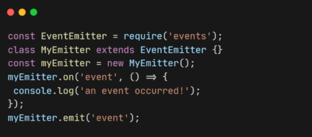 EventEmitter是一个 Node.js 类,它包含所有基本上能够发出事件的对象。这可以通过使用 eventEmitter.on()函数附加由对象发出的命名事件来完成。因此,每当这个对象抛出一个甚至附加的函数时,都会同步调用。