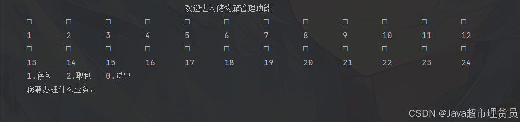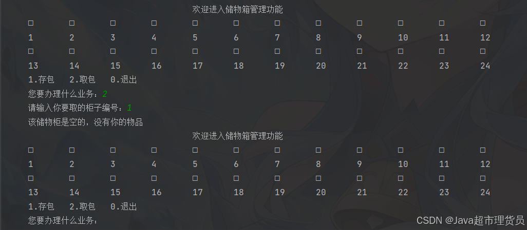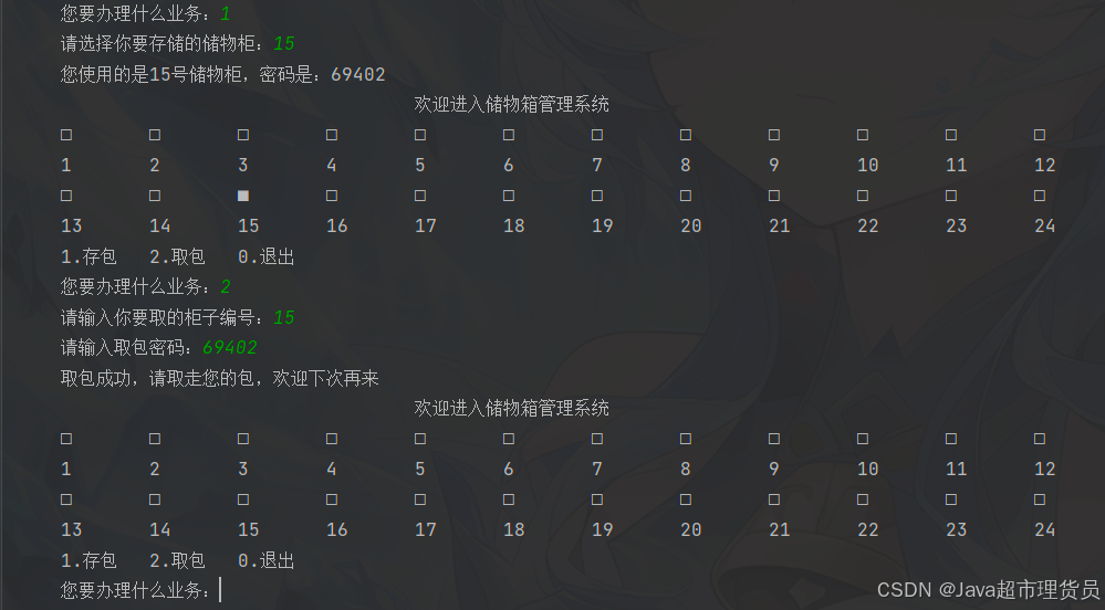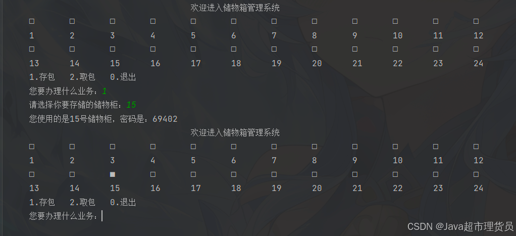 使用java程序模拟简易储物箱管理系统。
