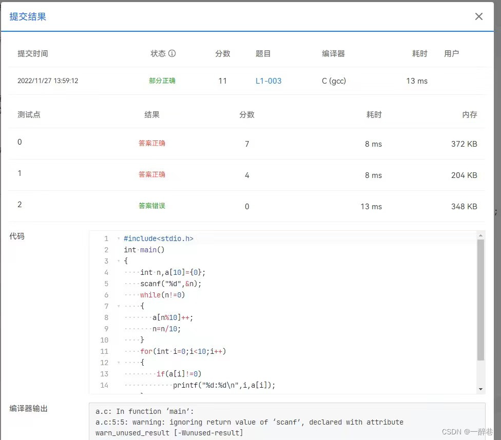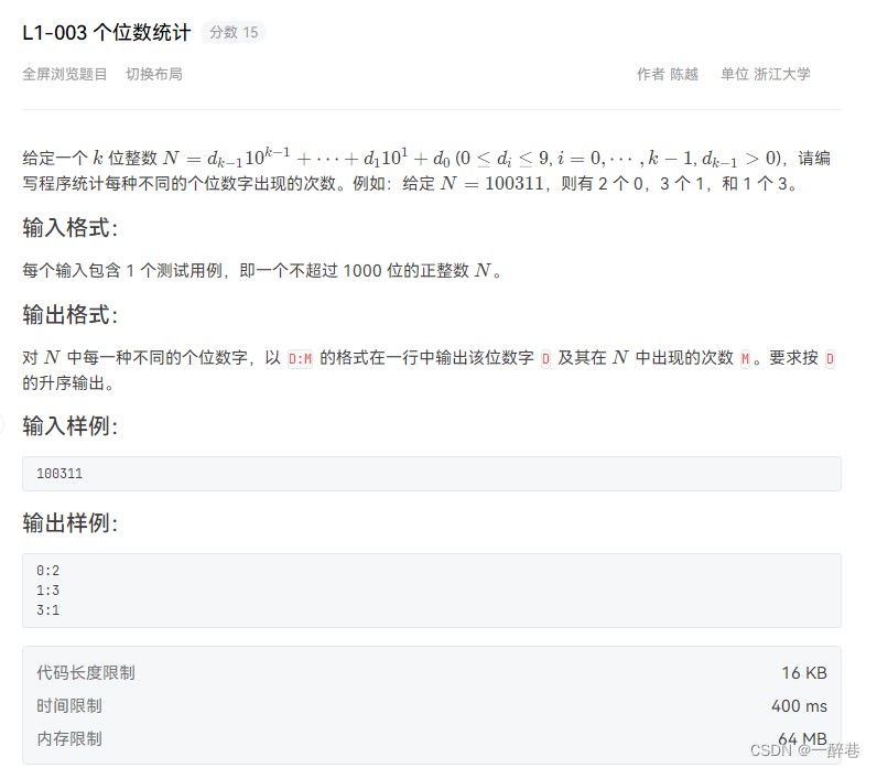 那么就会考虑到,是不是也可以使用字符型数组,使用“%s”一次性全部录入呢?答案是否定的。如果再次使用字符型数组,就会因为运行时间过长而判错。此外,使用字符型数组也会增添很多不必要的工作量。如果是自己写,就会浪费时间,增加内存。而对于本题,这种方法是错误的。这就需要我们综合考虑,做到又快又准。