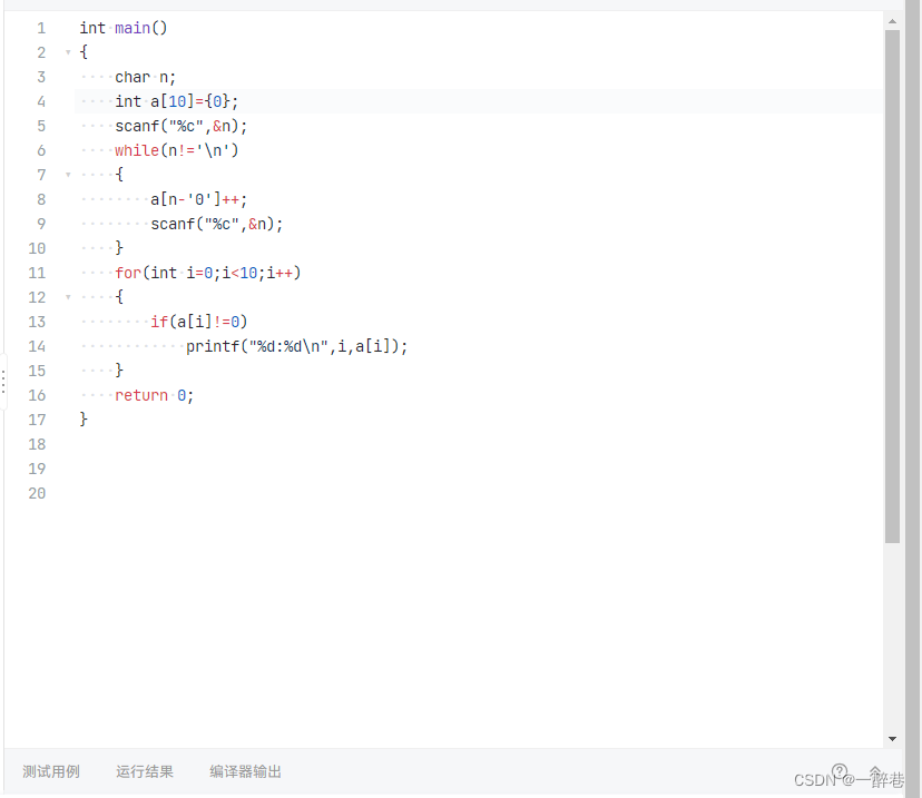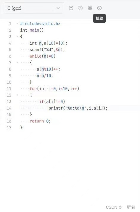 使用a[n- '0']将字符转为数字,成为数组a的下角标并计数,可以在计数的同时排序,运算时间和计数问题同时解决,还可以起到排序作用。我愿称其为一举多得。