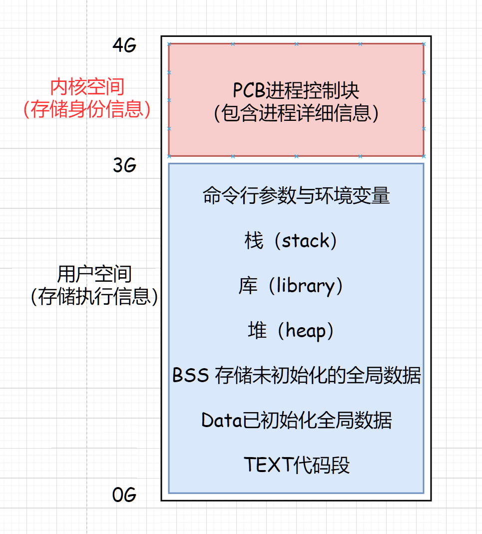 操作系统会给每个进程分配内存空间,32位和64位分配的空间大小有所不同: