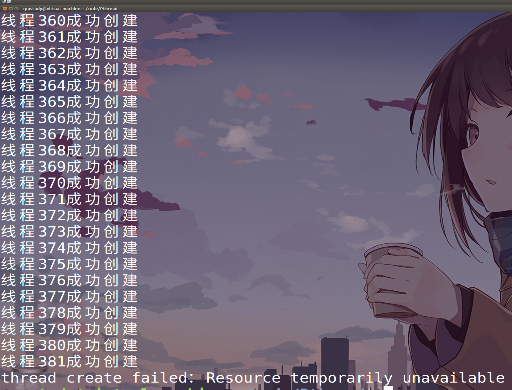 32位Ubuntu操作系统下,一个进程只能创建381个线程