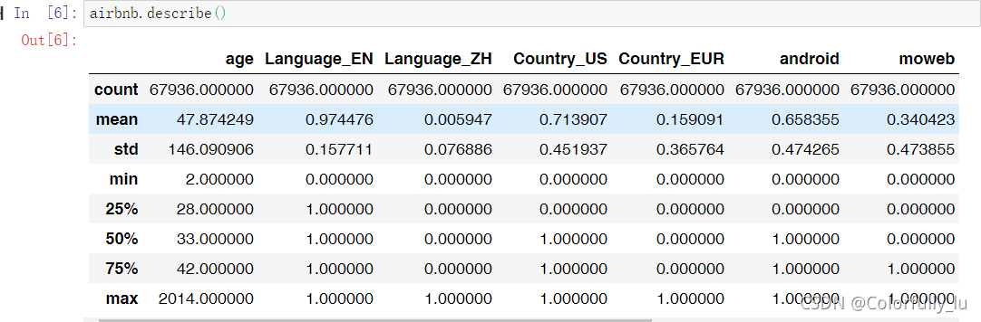 在使用info()和describe()函数查看数据之后,我们发现值得注意的点: