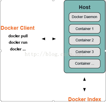 如上图,Docker守护进程(daemon)在主机上运行,用户不能直接和守护进程打交道,但是可以通过Docker客户端与其进行交互;Client是Docker的初始用户界面,它接收用户的命令并反馈,并且与Docker的守护进行交互。