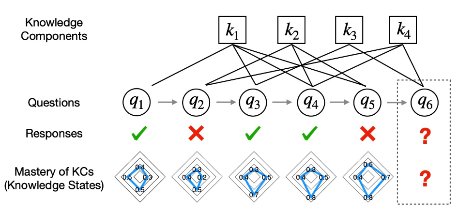 知识追踪是基于学生行为序列进行建模,预测学生对知识的掌握程度。知识追踪是构建自适应教育系统的核心和关键。在自适应的教育系统中,无论是做精准推送,学生学习路径规划或知识图谱构建,第一步都是能够精准预测学生对知识的掌握程度。